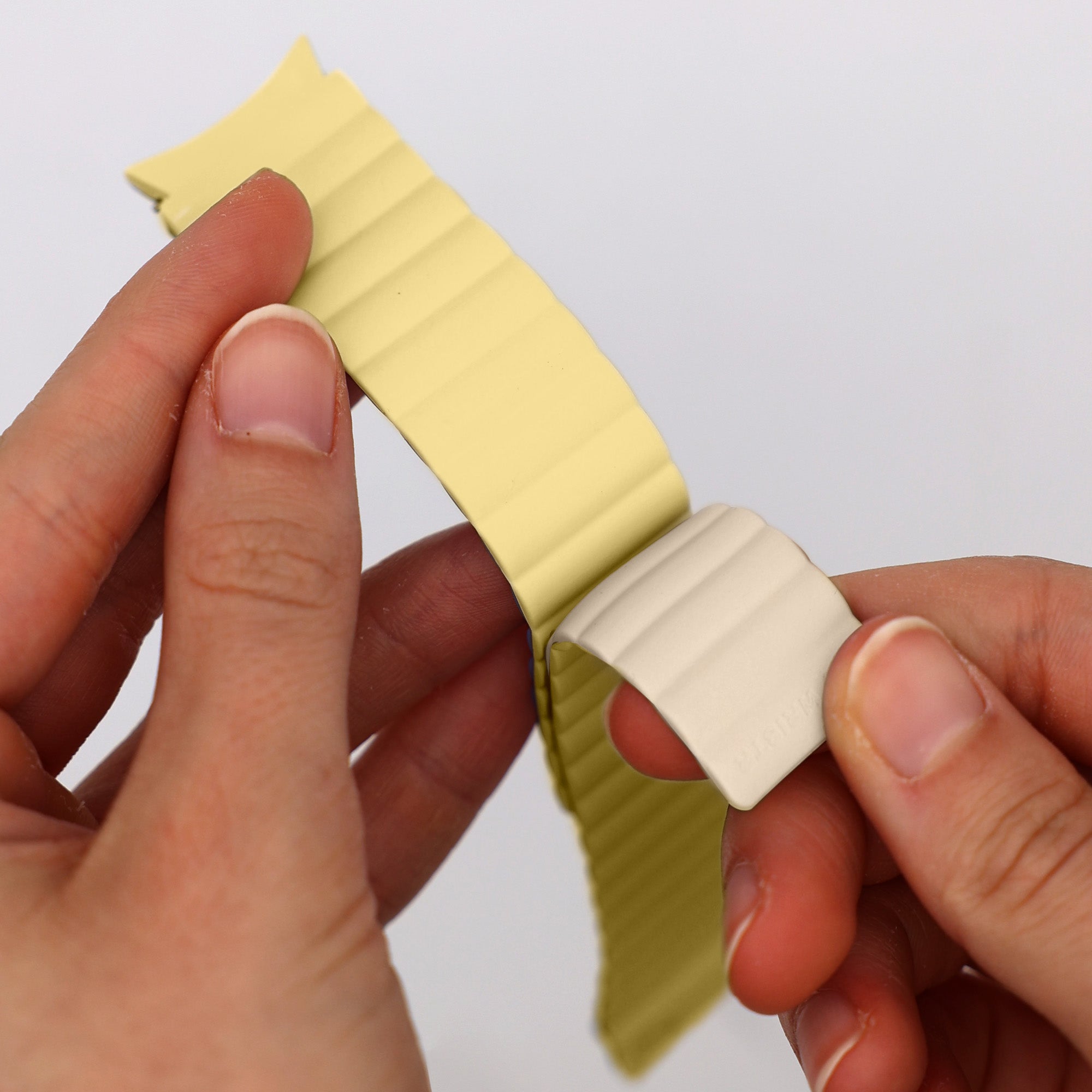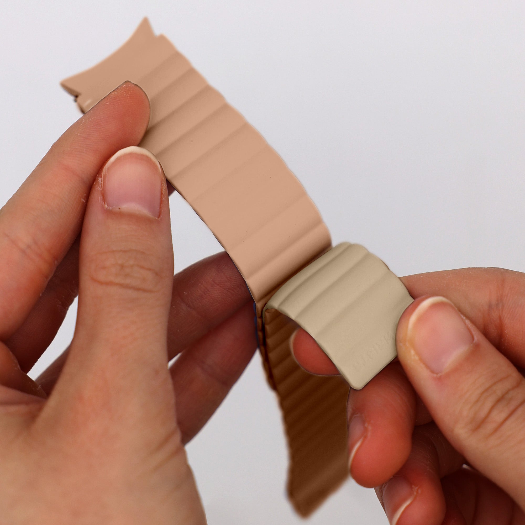 Bitte miss den Umfang deines Handgelenks (nicht die Länge des Armbandes!) mit einem flexiblen Maßband. Alternativ kannst du einen ca. 2,5cm breiten Streifen aus Papier schneiden.